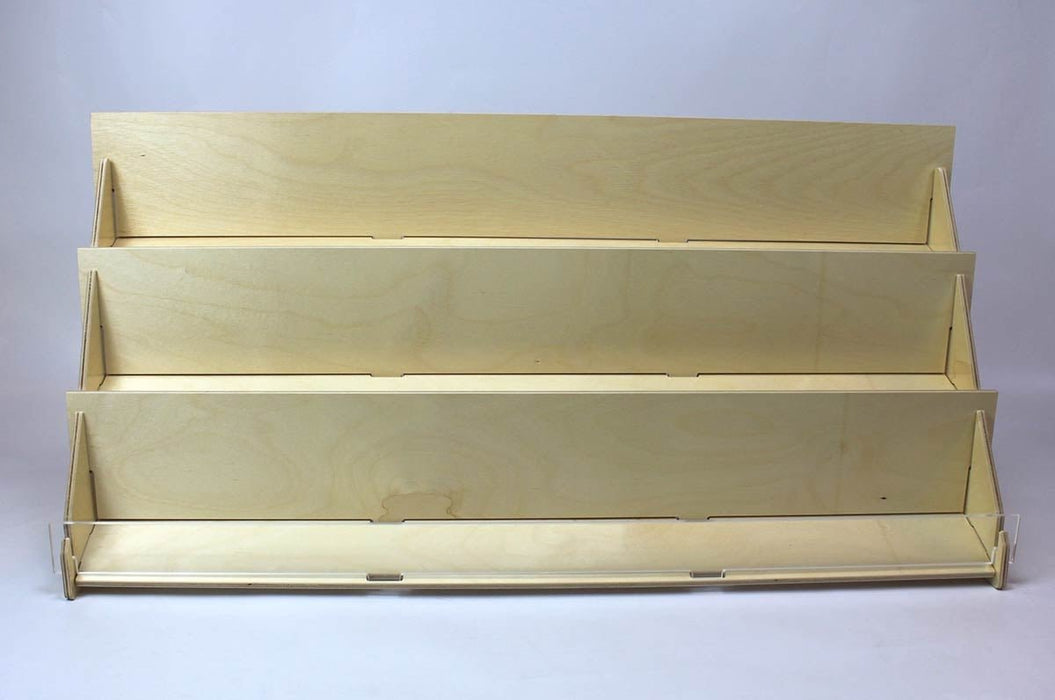 Modern Retail Card Display Rack With 27" Wide Birchwood Shelves
