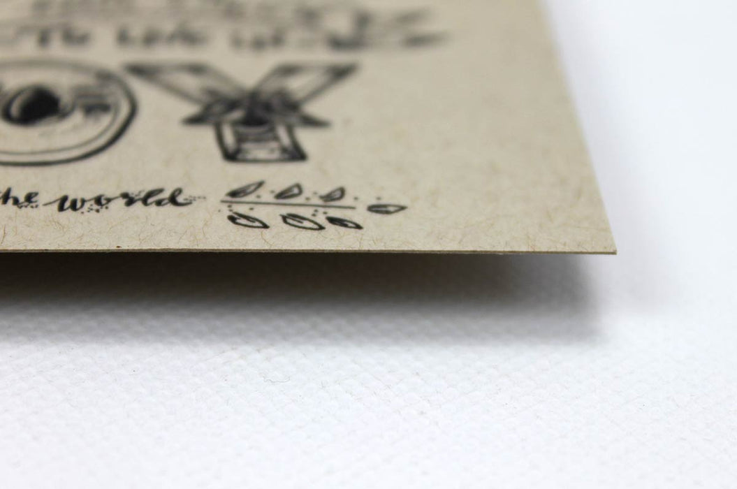 These uncoated tan hued kraft cards are easy to write on with a pen, pencil or marker without the risk of smudging. Your artwork is printed on this light sandy hue kraft card stock in full color with optional white ink for a natural and organic look that evokes an earthy aesthetic.