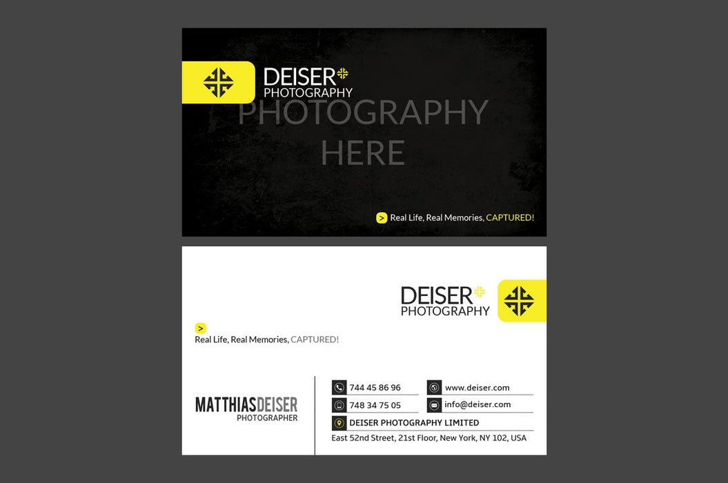 Picture this, your best photos laid out on this Photography Business Card Template, the contemporary design with technical themed overlays of your information will give your confidence a boost every time you hand out a card!